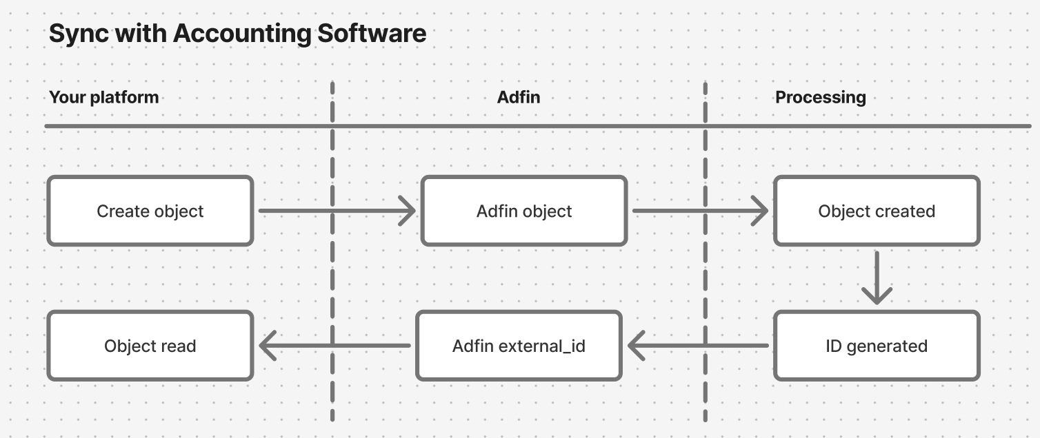 You and your clients can use Adfin to create and sync data in their accounting system.