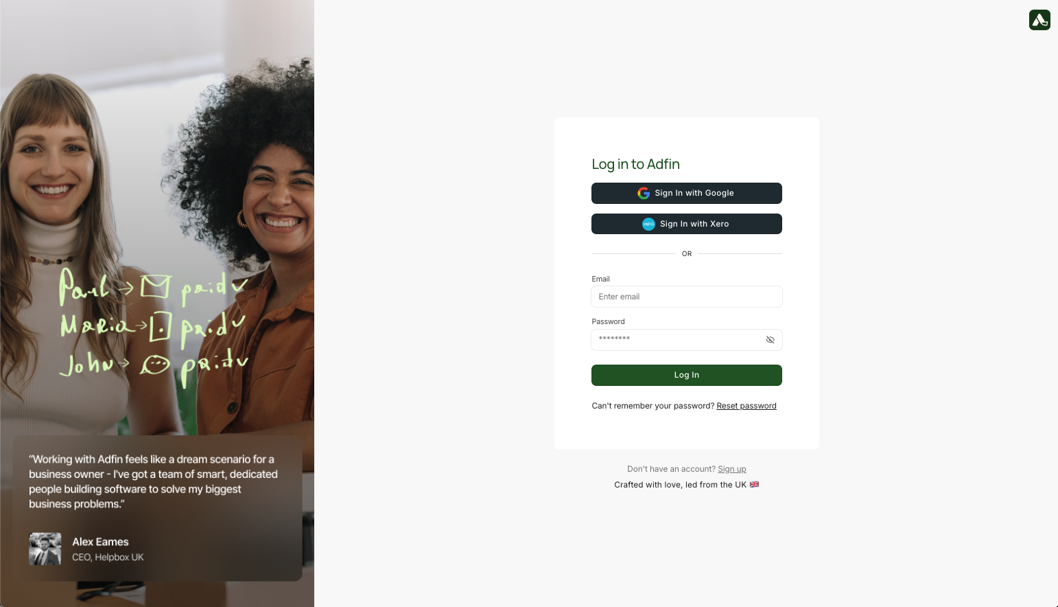Navigate to the following URL, where you will be able to sign up for Adfin. https://staging.adfin.com/auth/signup
